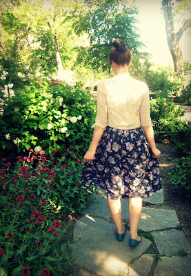This is the first time I've brought out this skirt since the weather's been warmer. It was a staple for me last summer. Perfect length, beautiful floral pattern, perfect colors. I just love it.
